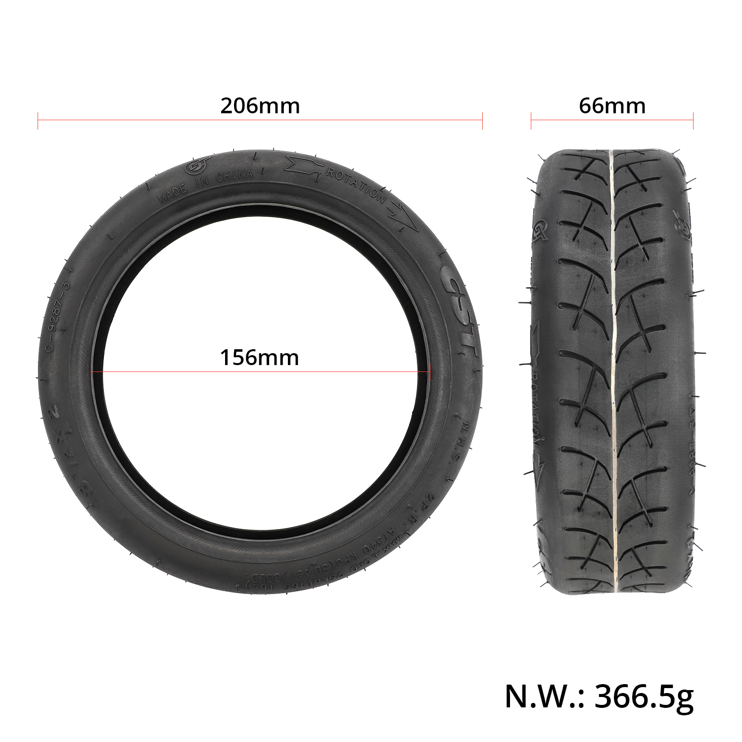 Neumático interior y de cubierta CST 8 1/2*2L con válvula recta - Imagen 6