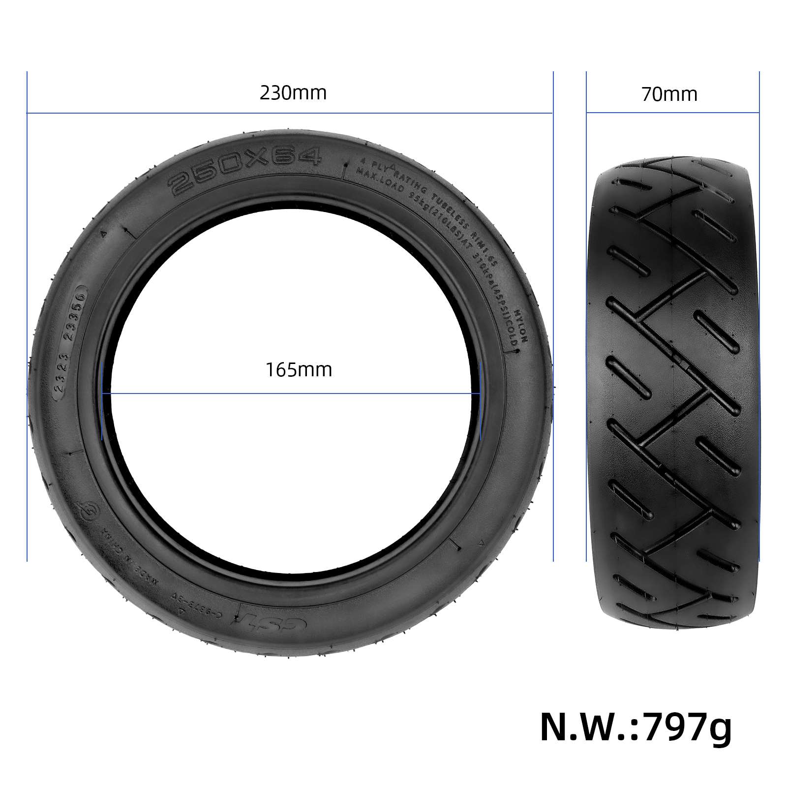 Neumático CST 250×64 con gel para patinete eléctrico Xiaomi 4 Ultra y Navee S65. Neumático CST/Zhengxin para patinete eléctrico 250×64, autoreparable, con gel adhesivo, líquido antipinchazos y sin cámara.