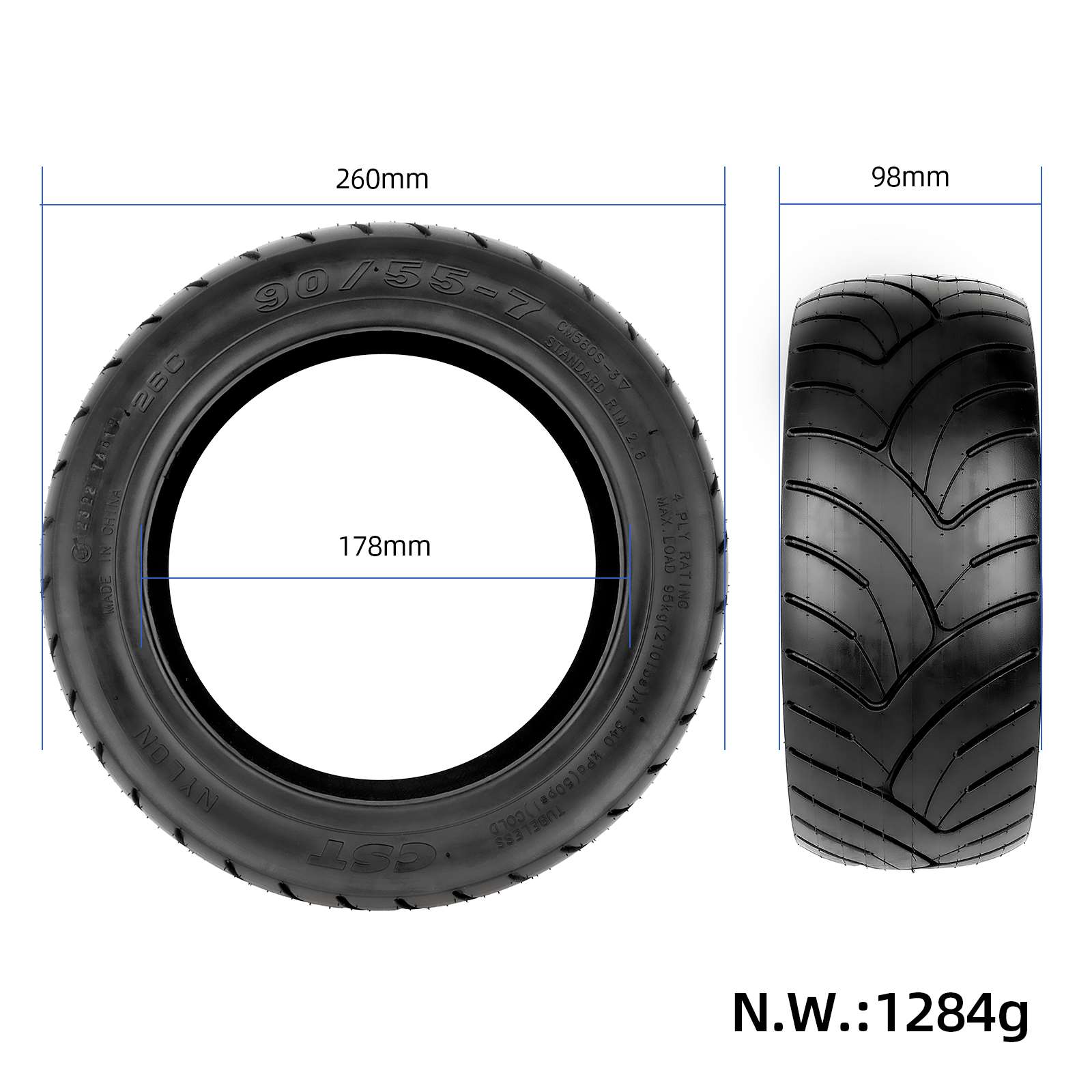 Neumáticos sin cámara originales CST para patinete eléctrico Segway Ninebot GT1 GT2 SuperScooter 90/55-7 con gel de vacío.