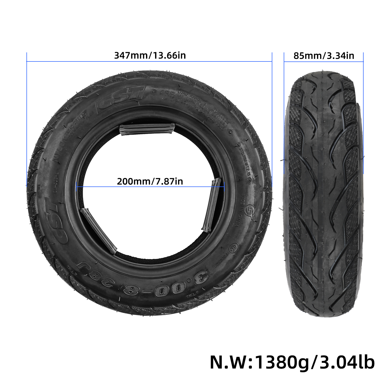 Neumático sin cámara CST 3.00-8 Neumático sin cámara CST 3.00-8 para vehículo eléctrico Neumático de vacío CST 3.00-8 CM539 Reemplazo para minimotos