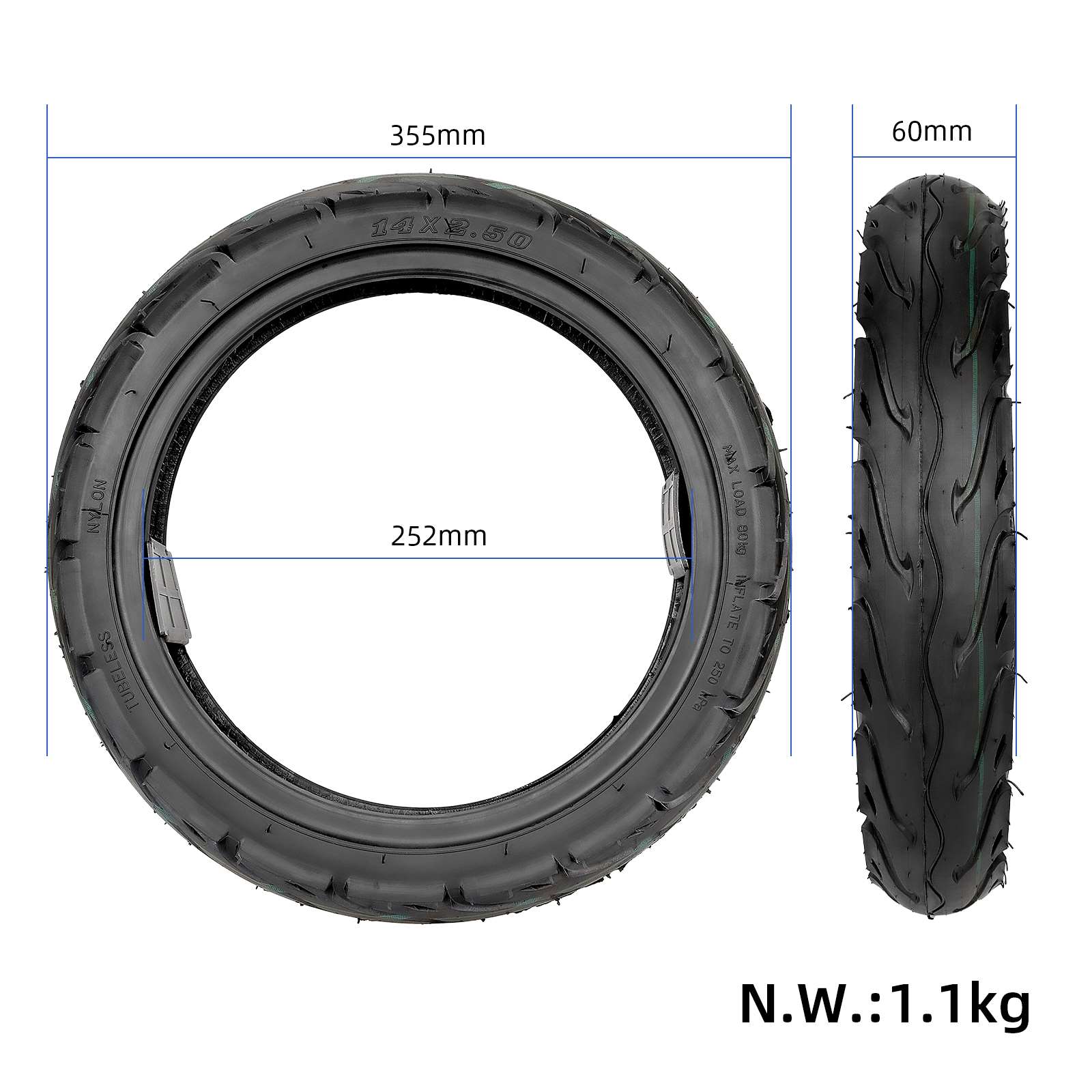 Neumáticos sin cámara de 14×2,50 para bicicleta eléctrica de 14 pulgadas. Neumáticos de 14×2,50 para bicicleta eléctrica. Neumáticos de 14×2,125 de caucho al vacío. Accesorios de repuesto para bicicleta eléctrica.