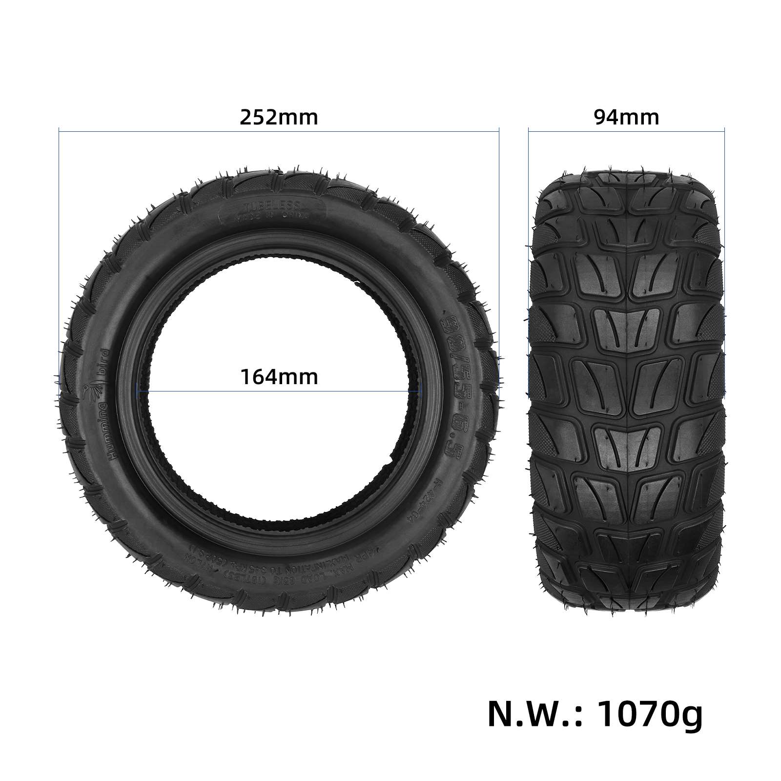 Neumático sin cámara Humming Bird 90/55-6.5, engrosado y ensanchado, para patinetes eléctricos.