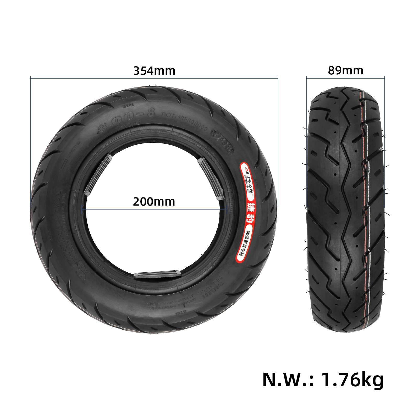 Neumático sin cámara Innova 3.00-8, neumático de caucho sin cámara, neumático de vacío de 4 capas engrosado, neumático de vacío 3.00-8 para scooter eléctrico, motocicleta, coche eléctrico