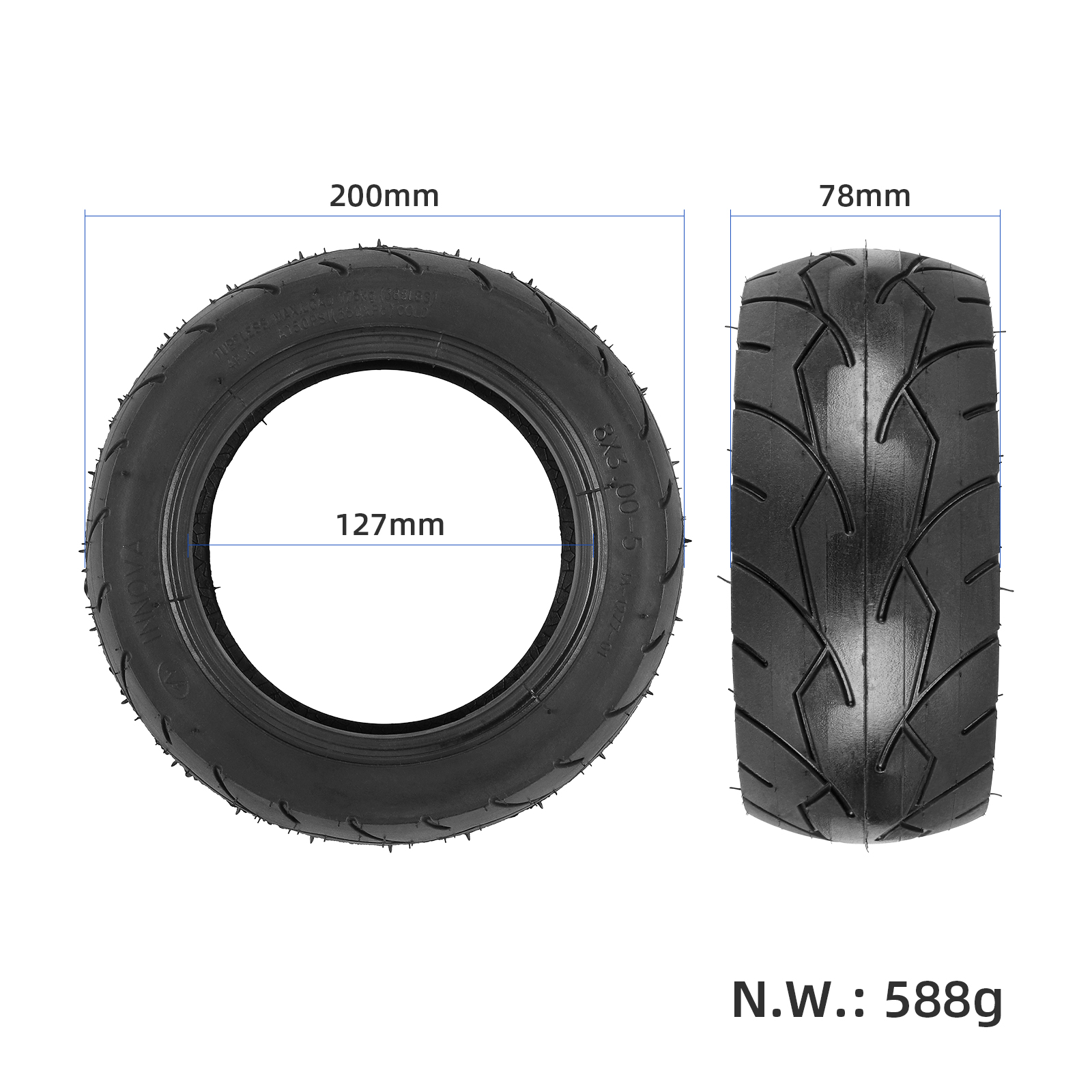 Neumático sin cámara Innova 8×3.00-5, neumático de vacío 8×3.00-5 para patinete eléctrico Kaabo Mantis de 8 ruedas, repuesto de neumático exterior de 8 pulgadas, neumático 8×3.0