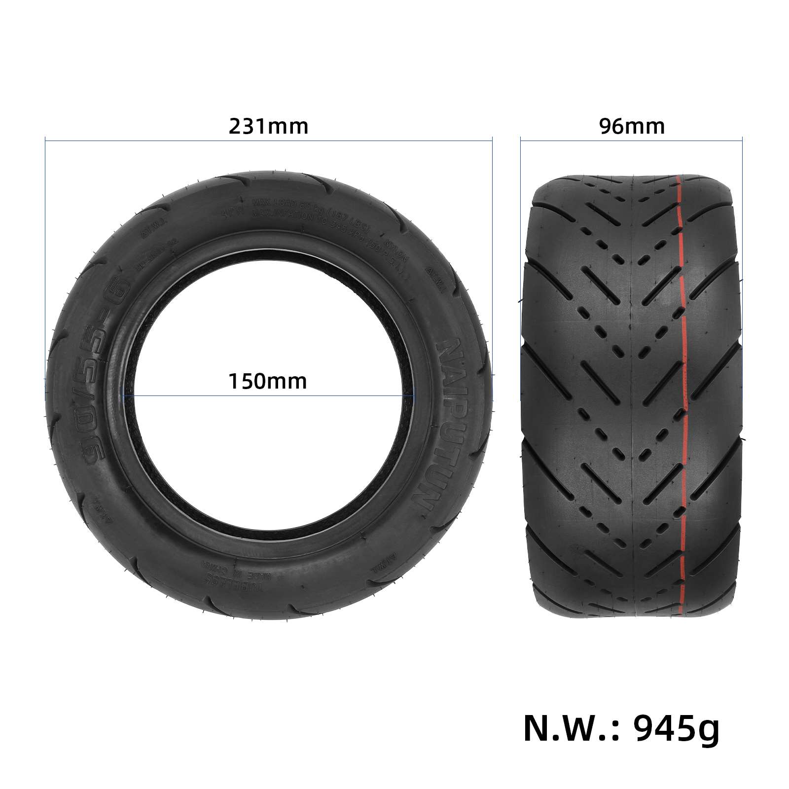 Neumático sin cámara NAIPUTUN 90/55-6, neumático sin cámara 90/55-6, neumático de vacío para carretera urbana engrosado para accesorios de scooter eléctrico