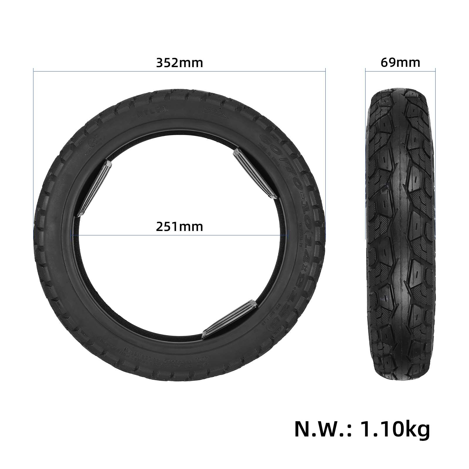 Neumático sin cámara YUANXING 60/70-10(14*2.125) - Imagen 4