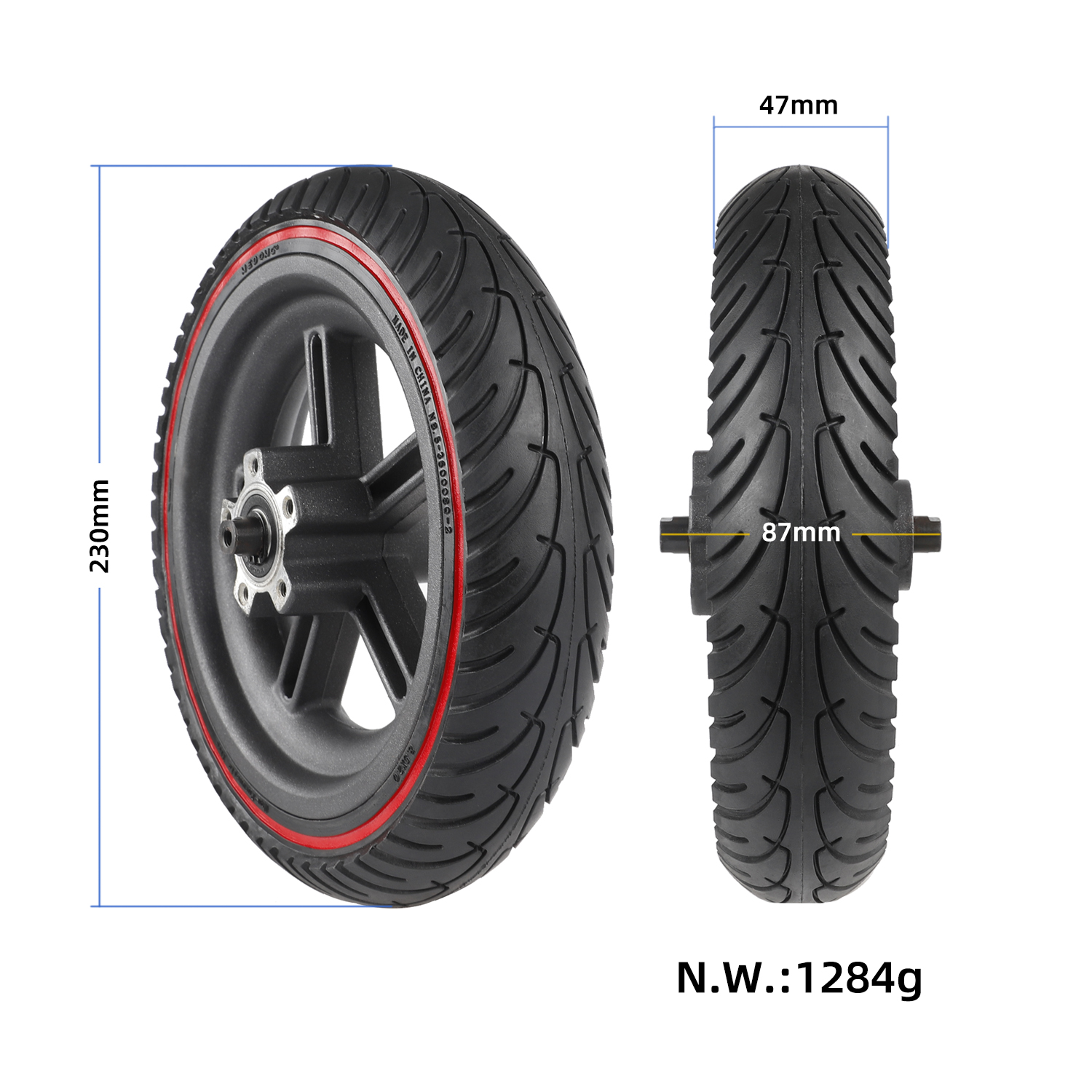 Neumático sólido de 8,5 pulgadas con círculo rojo y llanta para patinete Xiaomi M365 1S con rueda trasera sólida de 8,5 pulgadas con orificio interior de línea roja y juego de bujes a prueba de explosiones.