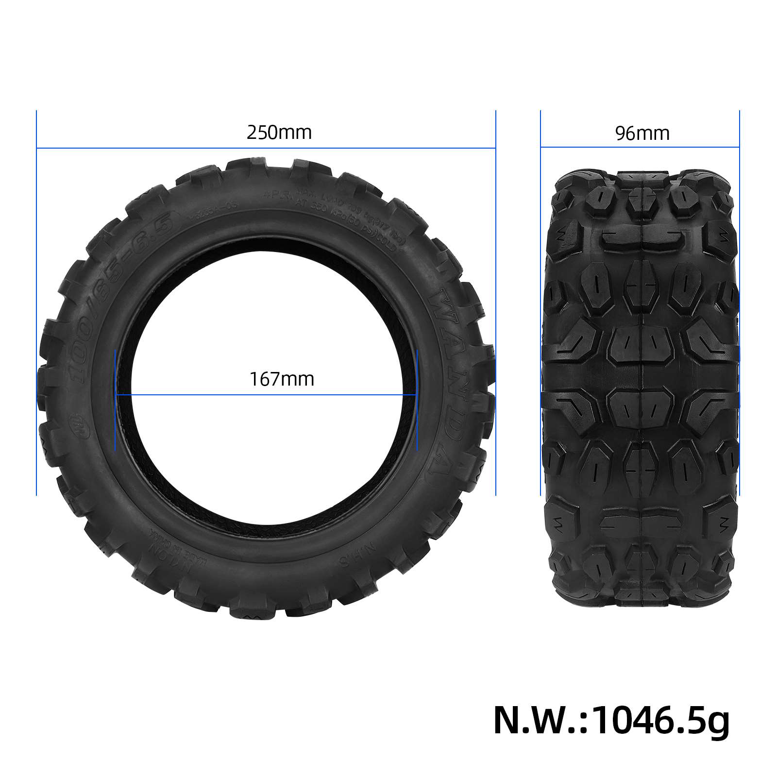 Neumático todoterreno de 10 pulgadas 100/65-6.5 para scooter eléctrico Zero 11X Vsett 11+ Dualtron. Neumático general todoterreno con excelente rendimiento antideslizante. Ruedas delanteras y traseras ensanchadas y engrosadas. Accesorios de repuesto de alta calidad.