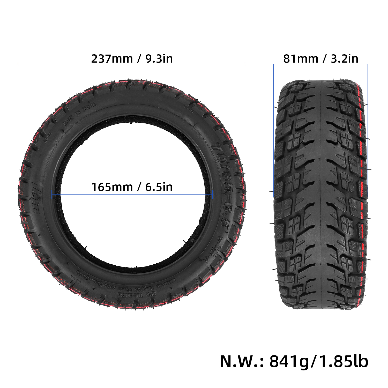 Neumático todoterreno sin cámara ULIP 70/65-6.5 con válvula para patinete eléctrico Ninebot Mini Pro de 10 pulgadas, a prueba de explosiones, universal, de vacío, de caucho engrosado de 4 capas, repuesto para rueda delantera y trasera.