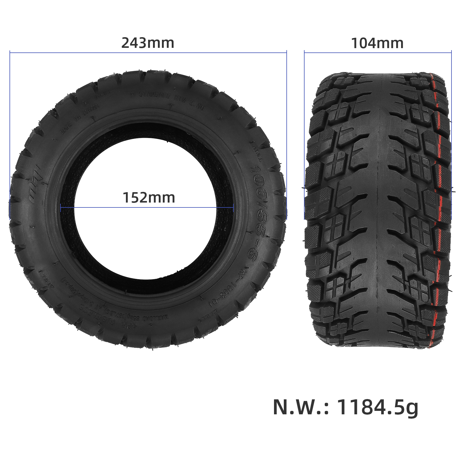 Neumático todoterreno sin cámara ULIP de 11 pulgadas 100/55-6 para patinete eléctrico TEVERUN Fighter 10/10+, kart, ATV, cuatrimoto, vehículo todoterreno, neumático de vacío de gran agarre, neumático de caucho engrosado de 4 capas, repuestos para ruedas delanteras y traseras, accesorios antideslizantes de alto agarre.