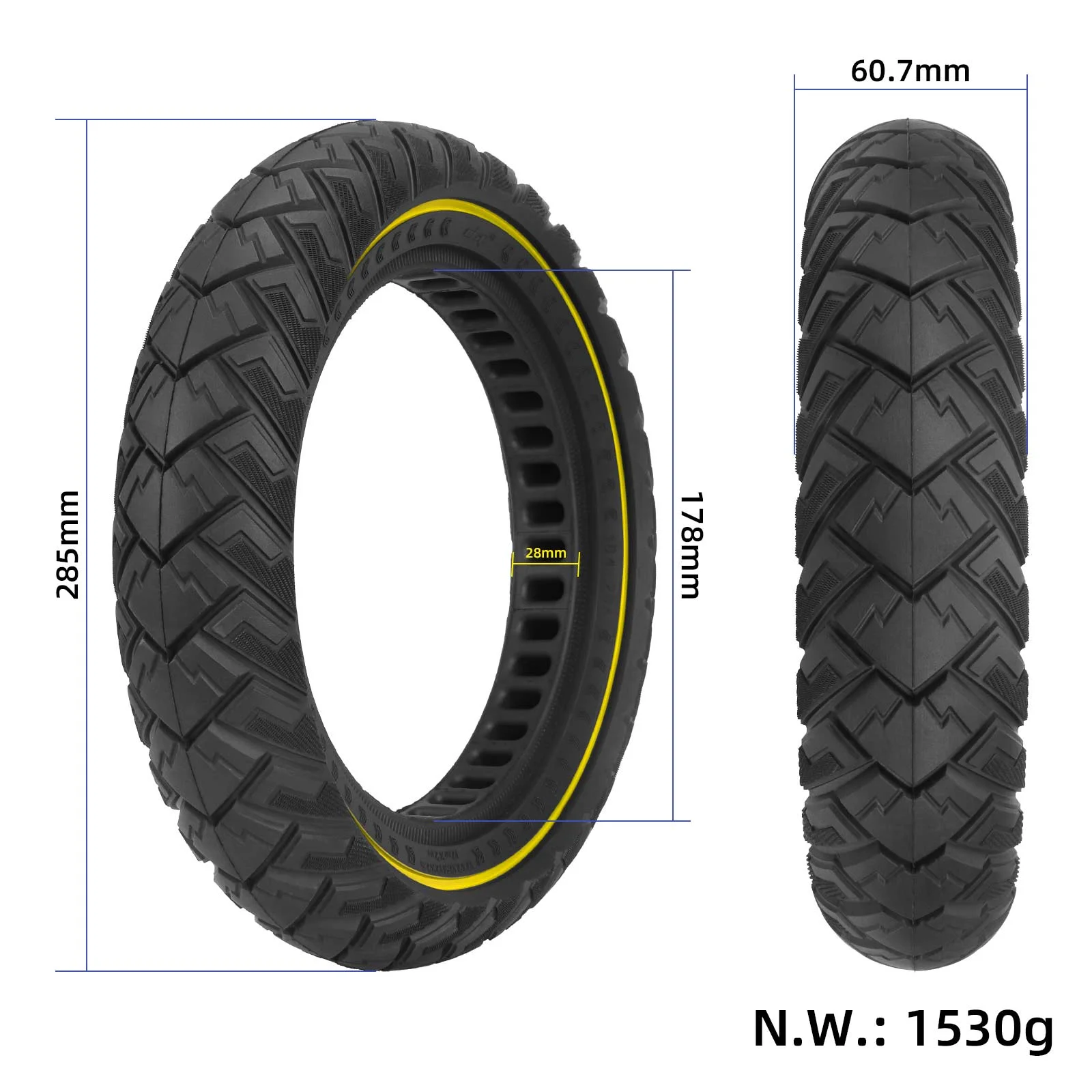 Neumático sólido todoterreno Ulip 12*2.125/12*2.5/12 1/2*2 1/4 Yellow Line Wingtread con ranuras de 28 mm Neumático sólido Ulip 12×2.125 12*2.125/12*2.5/12 1 2*2 1 4 Neumáticos todoterreno sólidos resistentes a pinchazos para scooters eléctricos Neumático resistente a pinchazos