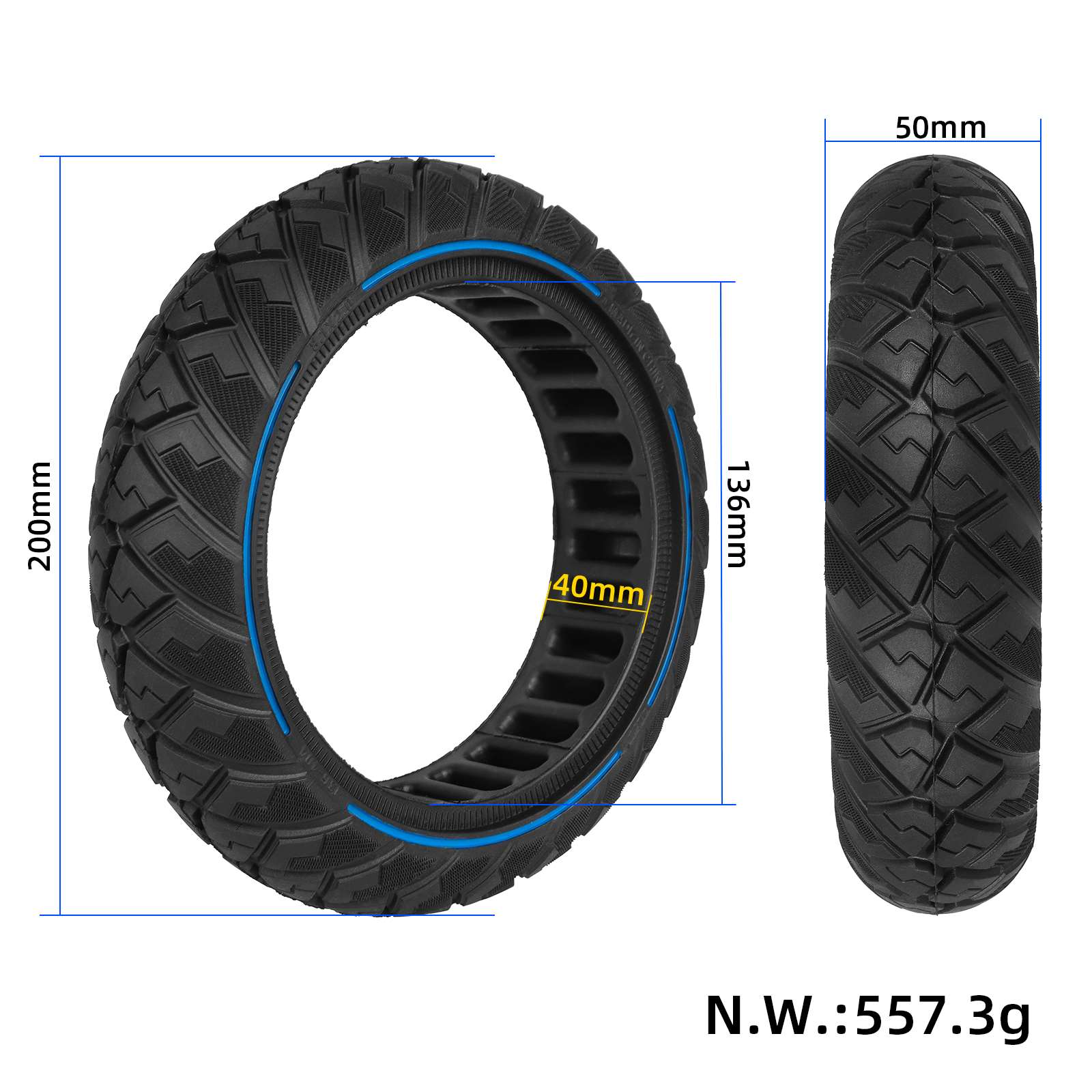 Neumático todoterreno sólido Ulip 8.1*2.0 con forma de diamante y círculo azul - Imagen 3
