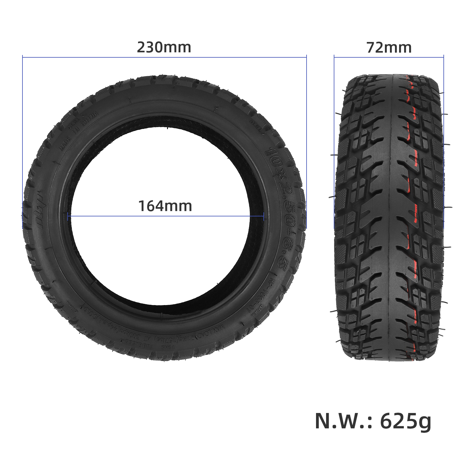 Inicio / Shop / PRODUCTOS / RUEDAS / NEUMATICO / Neumático sin cámara Ulip 10*2.50-6.5 con válvula PVR50