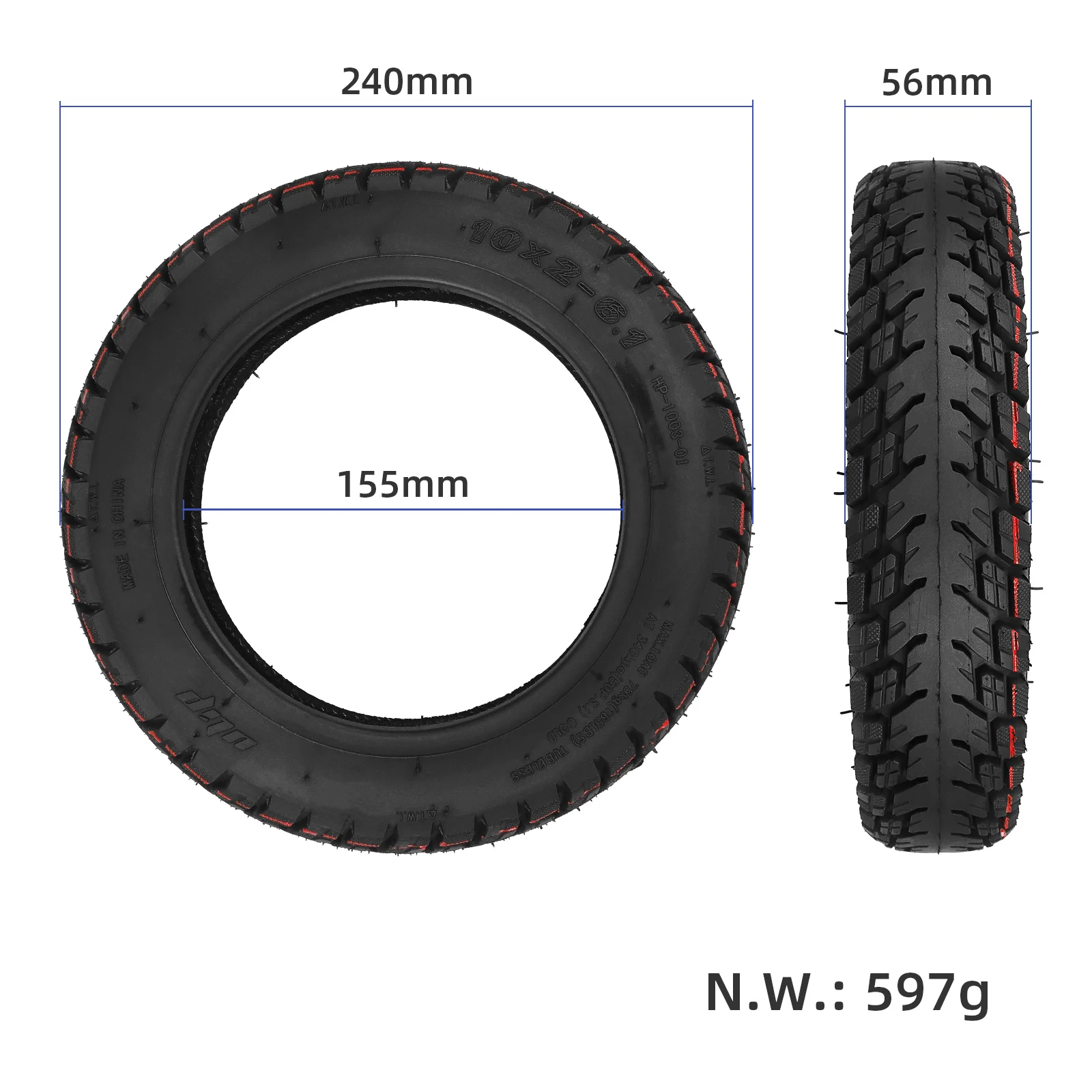 Neumático todoterreno sin cámara ULIP 10*2-6.1 para patinetes Xiaomi M365/Pro/Pro 2./1S/3 de 10 pulgadas. Neumático todoterreno sin cámara.