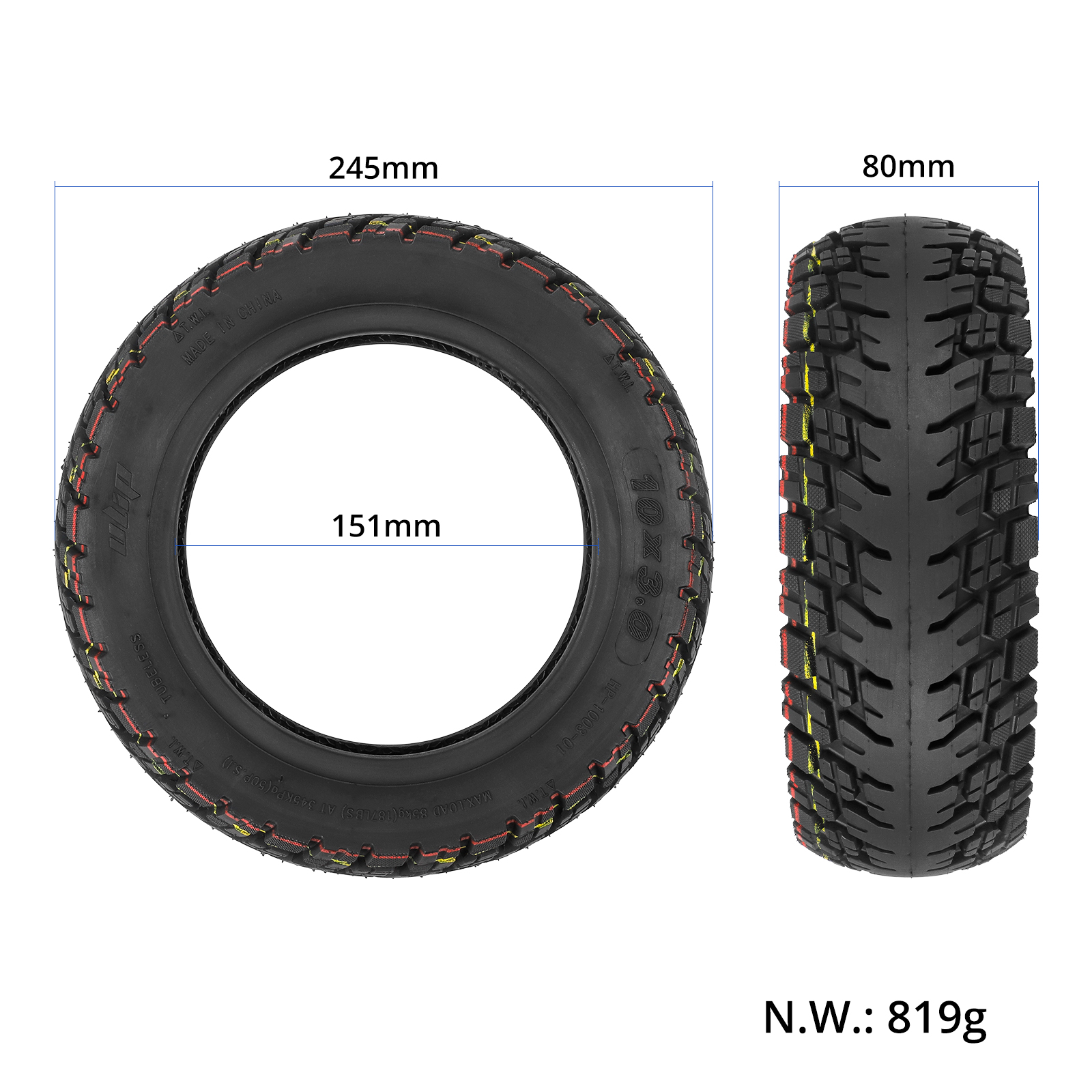 Neumático todoterreno sin cámara Ulip 10×3, 80/65-6, 255×80, para patinete eléctrico, 10 pulgadas, engrosado, 10×3-6