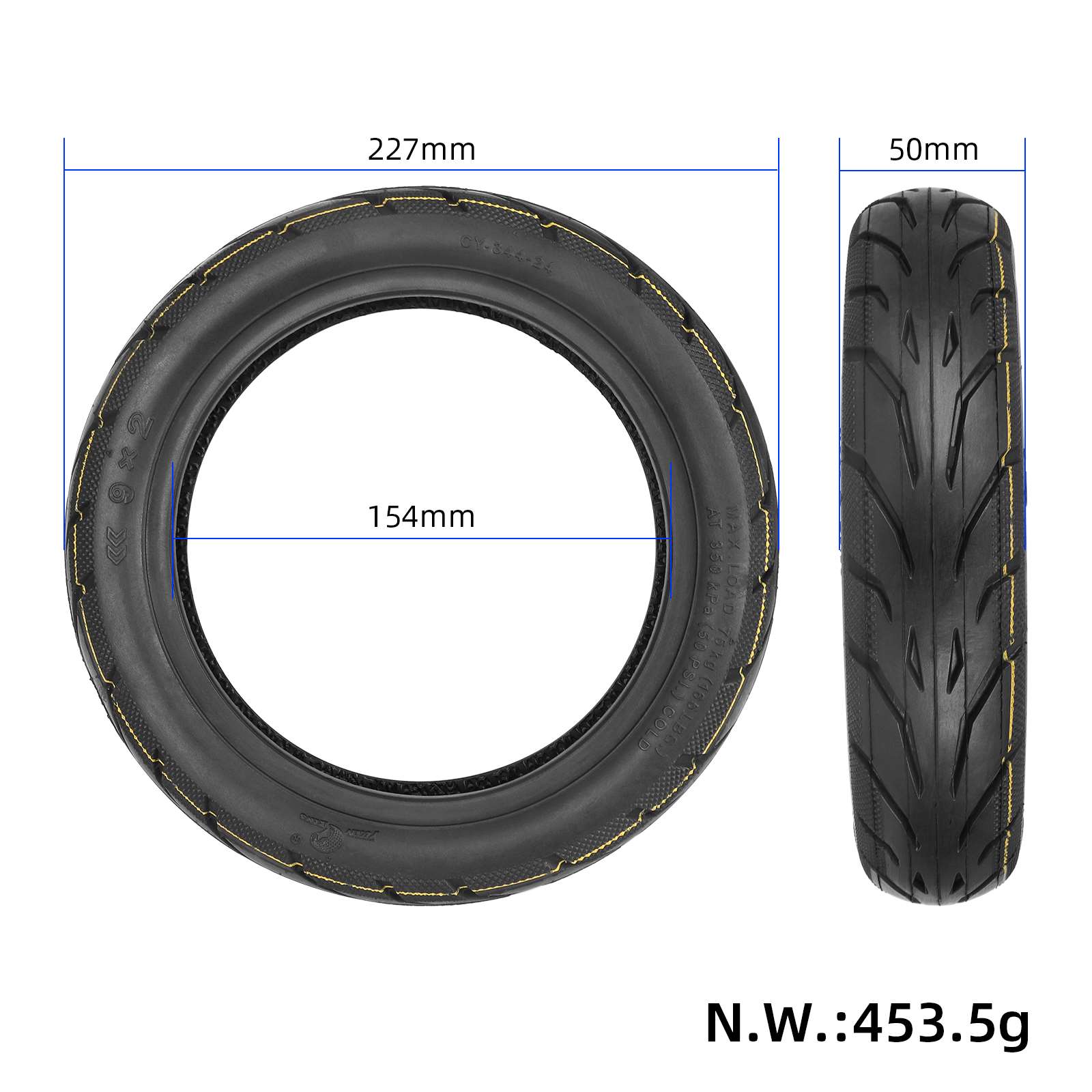 Neumático sin cámara Yuanxing 9×2 con línea amarilla para scooters Odys Pax Okai Neon, neumático duradero para scooter, piezas de scooter, neumático de vacío 9×2 para scooter Ninebot E22 E25 E45.