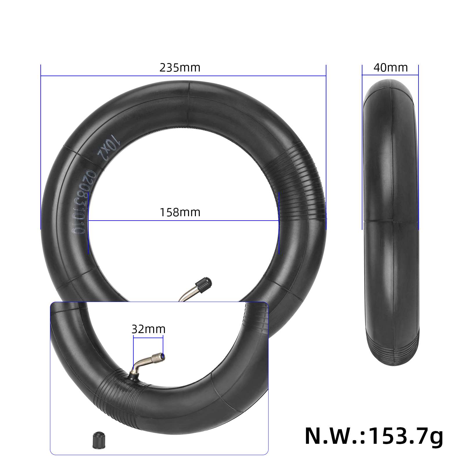 Cámara de aire reforzada de 10×2 con ángulo de válvula de 0x0 grados hacia adentro, extra gruesa, resistente a pinchazos y a prueba de fugas, cámara para cámara de aire de scooter de 10×2, repuestos para cámara de aire delantera y trasera, cámara de aire duradera reforzada de 10 pulgadas para scooters eléctricos.
